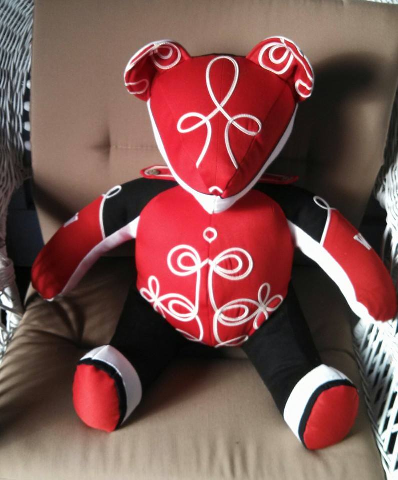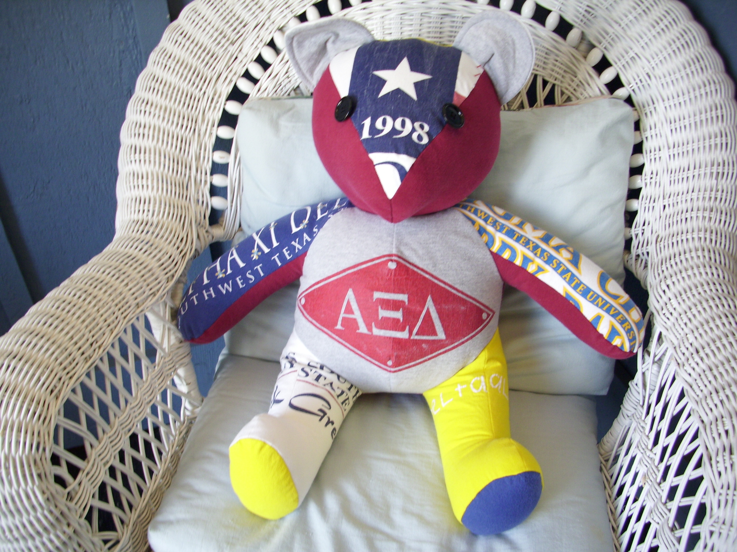 Specialty Bears are most often used for advertising or become "Store Mascots." Most often they contain some new fabric chosen specifically by the customer for color or logo, incorporating a company design or logo.